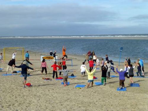 "Fit in den Tag" findet von Sonntag bis Freitag jeweils um 10 Uhr statt, wenn das Wetter es zulässt am Sportstrand. Um 11 Uhr folgt "Eltern-Kind-Sport" oder "Kidssport" im Wechsel.
