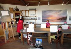 Als der Inselreporter die Ferienpass-Aktion von Carmen im Atelier von Inselmaler Anselm besuchte, waren die Blätter noch weiß. Darauf sollte später nach und nach eine Wattlandschaft mit Blick auf Spiekeroog entstehen.